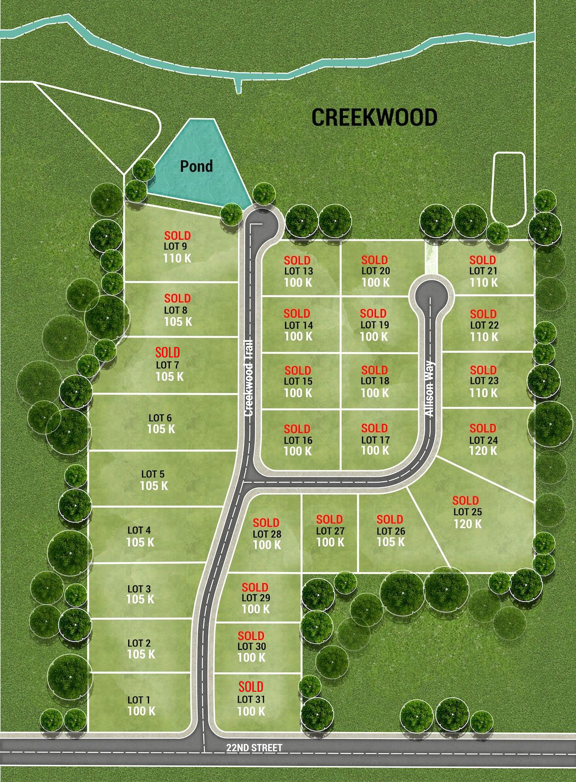 Creekwood is a one-of-a-kind community of just 29 luxury home sites, nestled in the natural beauty of Cleveland, Tennessee. Gas lantern-lit entrances, generous lots, and a peaceful setting make it the kind of place where you genuinely love coming home. Every home here is built from the ground up, just for you. We work closely with each family to bring their vision to life - whether that means soaring ceilings, a spa-inspired primary suite, or a back porch made for long evenings. With custom homes starting at $700,000, Creekwood is a rare chance to build exactly what you’ve been looking for in one of Cleveland’s most desirable neighborhoods. We take pride in honest craftsmanship, quality materials, and building homes that are meant to last - and meant to be lived in.